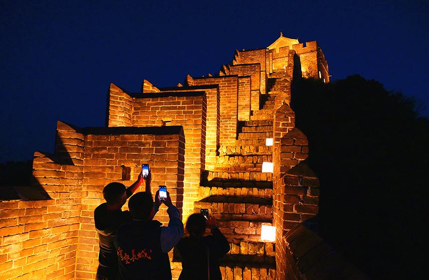 夜游金山岭长城的游客正在打卡拍照。滦平县委宣传部供图